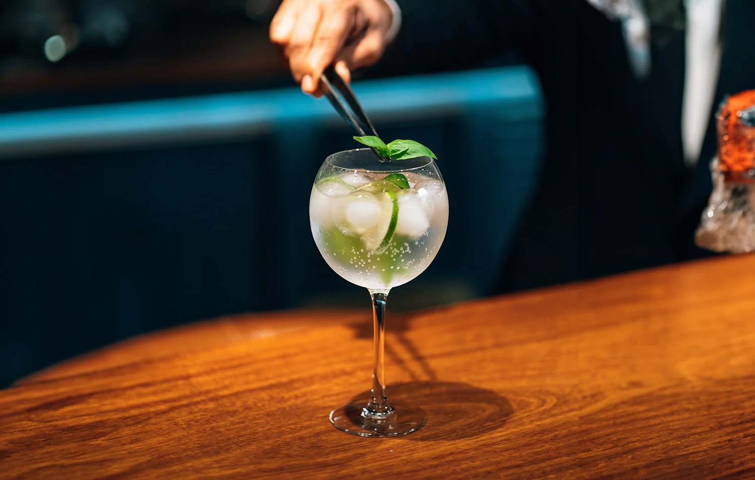 ¡Así es! Cuando el hielo esté colocado en el vaso, vierte los 50 ml de ginebra. Seguido, agrega el agua tónica hasta completar la copa. Recuerda que puedes ajustar la cantidad del agua tónica según tu preferencia de sabor: más fuerte o más suave.